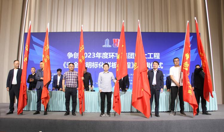 隨后會(huì)上進(jìn)行了爭(zhēng)創(chuàng)2023年度環(huán)宇集團(tuán)重大工程“安全文明標(biāo)化樣板工程”授旗儀式。