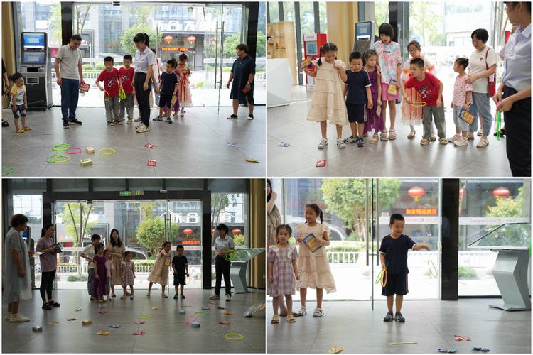 在外灘未來社區(qū)內(nèi),開設(shè)了投壺區(qū)、VR區(qū)、游戲區(qū)、歌唱區(qū)、圖書區(qū)等不同的體驗館,家長們和孩子們拿著游園卡到各個場館體驗,每體驗一個場館,就能在游園卡上蓋一枚印章,集齊所有的印章后便可以到兌換處領(lǐng)取一份禮物。