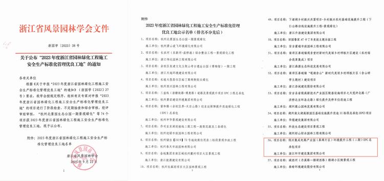紹興集成電路產(chǎn)業(yè)園(皋埠片區(qū))環(huán)境提升工程(二期)EPC總承包項還榮獲“2023年度浙江省園林綠化工程施工安全生產(chǎn)標(biāo)準(zhǔn)化管理優(yōu)良工地”。