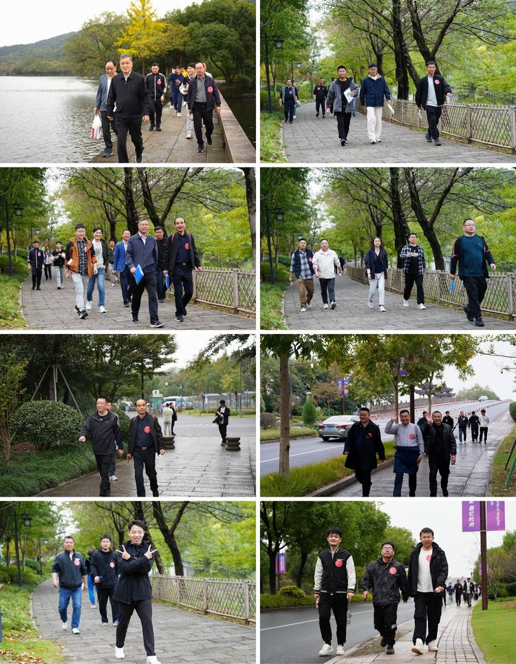 在風(fēng)景秀麗的湘湖湖畔,以湘湖西門為起點,途徑政和橋、德風(fēng)橋、凈瀾亭、越堤、西施別越、湘湖水街等美景。環(huán)宇人穿行在綠蔭、亭臺樓榭之中,浩浩蕩蕩,用腳步丈量湘湖之美。在徒步過程中大家相互鼓勵,攜手并進(jìn),在煙雨朦朧中感受湘湖的魅力與詩意,10公里的行程也不覺那么漫長。徒步隊伍最終集結(jié)在湘湖大院,進(jìn)行休整,并抽取幸運大獎。