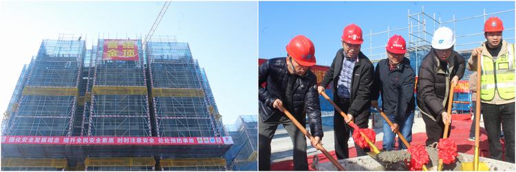 從一紙藍(lán)圖到喜結(jié)金頂,從美好未來的構(gòu)想到主體結(jié)構(gòu)的落成,每一道施工工序無不體現(xiàn)了項目部全體員工兢兢業(yè)業(yè)的扎實工作。我們將封頂作為該工程建設(shè)的新起點(diǎn),集中力量、精心組織、全面抓好項目的安全、質(zhì)量、進(jìn)度工作,繼續(xù)發(fā)揚(yáng)艱苦奮斗的精神,確保項目按期竣工。