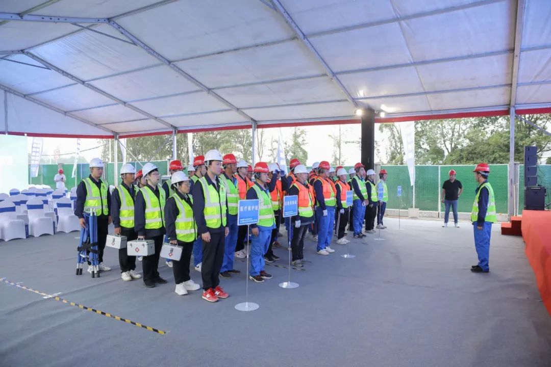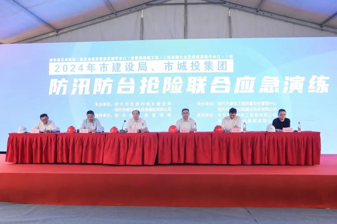 本次演練由紹興市住房和城鄉(xiāng)建設局和紹興市城市建設投資集團有限公司聯(lián)合主辦;紹興市應急管理局指導;紹興市建設工程質量安全管理中心、紹興市基礎設施建設投資有限公司聯(lián)合協(xié)辦;中交第三航務工程局有限公司和浙江環(huán)宇集團有限公司聯(lián)合承辦。市建設局黨委委員、總工程師崔海興;市城投集團黨委委員、副總經(jīng)理任明;市應急管理局應急指揮救援處處長傅小華;基建公司黨支部書記、董事長、總經(jīng)理陳聽學;基建公司黨支部委員、副總經(jīng)理方炳;中交三航局寧波分公司安全總監(jiān)武曉波;我司環(huán)宇集團副總經(jīng)理陳成鋒參會。