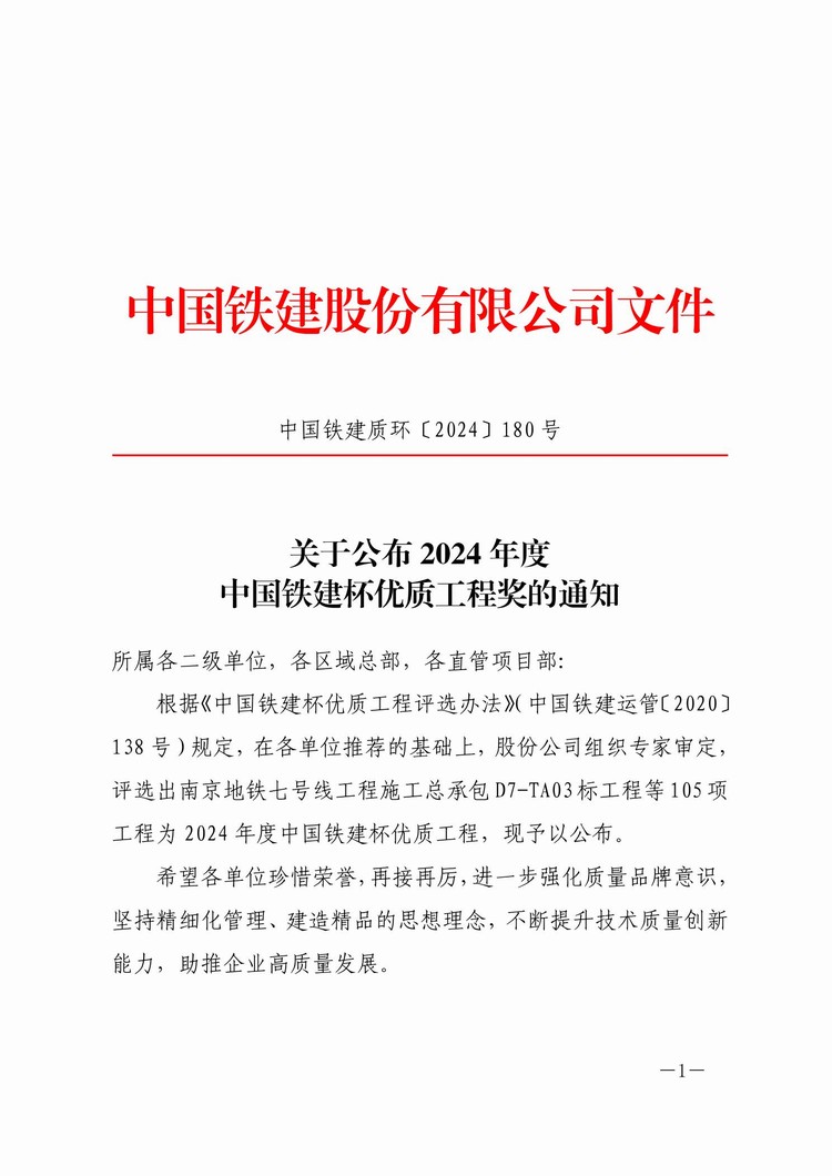 項(xiàng)目施工期間積極采用“四新”技術(shù)的應(yīng)用及科技創(chuàng)新,攻克一個(gè)又一個(gè)的關(guān)鍵節(jié)點(diǎn),為圓滿完成項(xiàng)目建設(shè)提供了堅(jiān)實(shí)的保障。“鐵建杯”優(yōu)質(zhì)工程獎(jiǎng)是對(duì)項(xiàng)目工程質(zhì)量的肯定,也是對(duì)全體建設(shè)者辛勤付出的肯定,我司將繼續(xù)秉承“誠(chéng)信、創(chuàng)新、務(wù)實(shí)、共贏”的核心價(jià)值觀,牢固樹(shù)立“質(zhì)量第一”的理念,打造更多的精品工程,為城市發(fā)展做出應(yīng)有的貢獻(xiàn)。