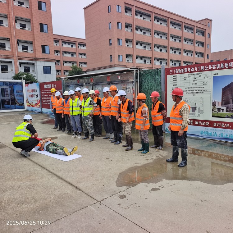 為深入貫徹落實全國“安全生產(chǎn)月”工作部署,切實提升全員安全防范意識與應急處置能力,近日,三門縣新能源與動力工程公共實訓基地項目項目部以“人人講安全、個個會應急——查找身邊安全隱患”為主題,緊密圍繞防汛、防暑、逃生及應急救援、消防演練等重點工作,扎實開展系列安全生產(chǎn)活動,全力筑牢工地安全防線。